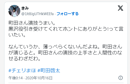 このドラマをきっかけに町田啓太さんを知ったという人も多く、「町田くん、演技が繊細。頭の先から指の先、背中まで細かい演技をしている」という声も多く出ていました。