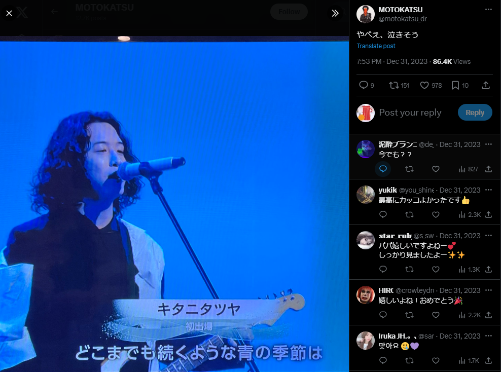 宮上さんは、タツヤさんのことをXで何度かポストしていますが、2023年の紅白歌合戦出場を「親戚の叔父さん」として本当に喜んでいる様子がうかがえます。